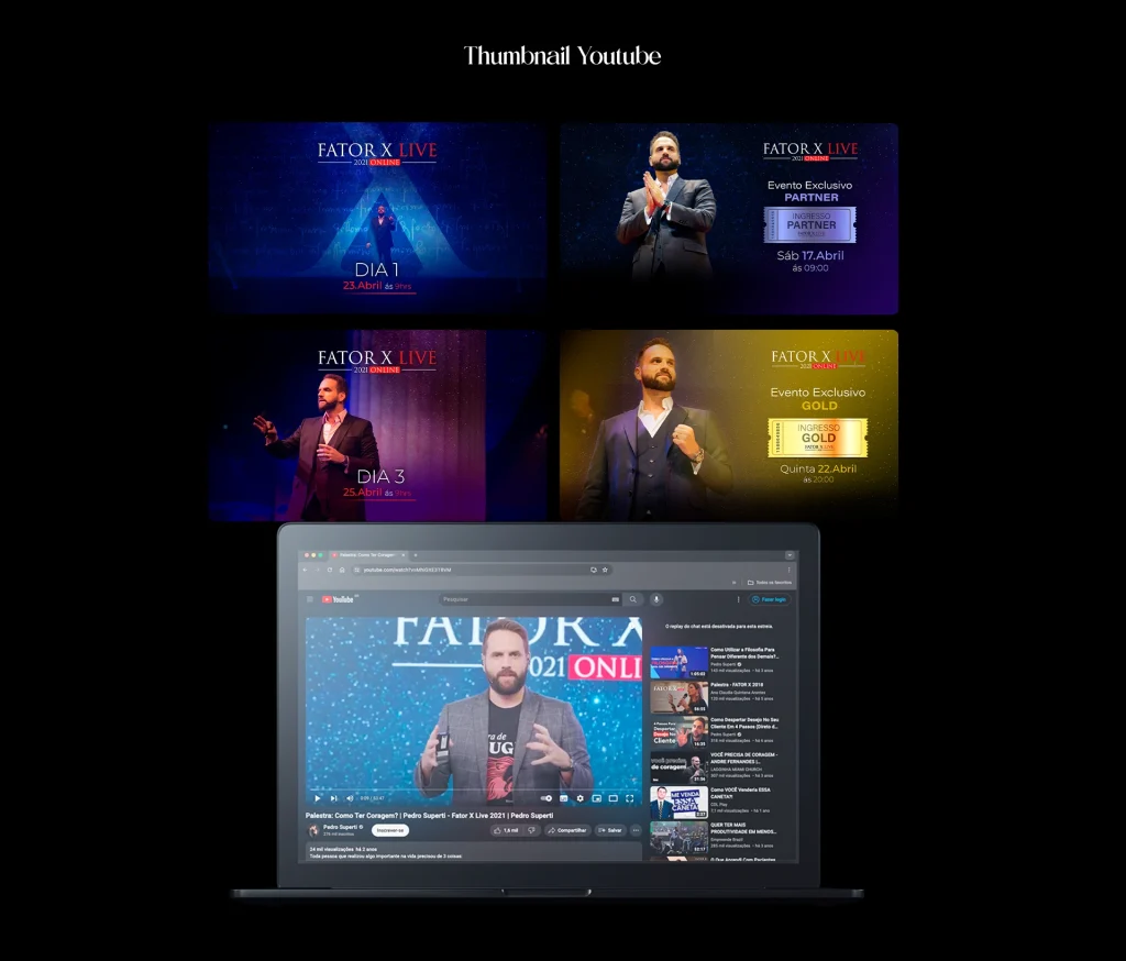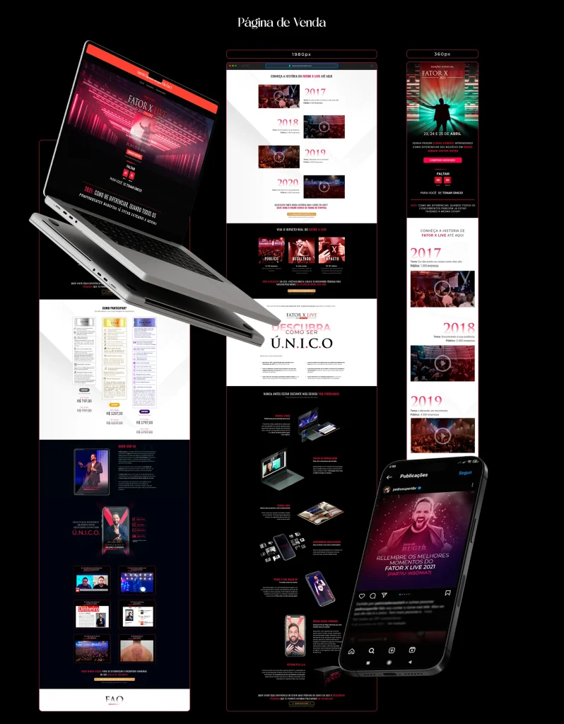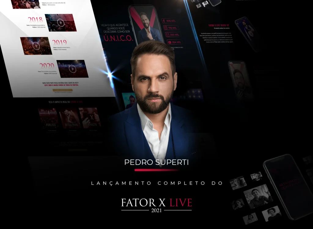 Fui o responsável por todo o design do lançamento Fator X Live, do Pedro Superti. Atuei em todas as frentes visuais: da página de vendas ao social media, passando pela intranet e identidade visual completa. Um projeto 360°, focado em performance, posicionamento e valor percebido.