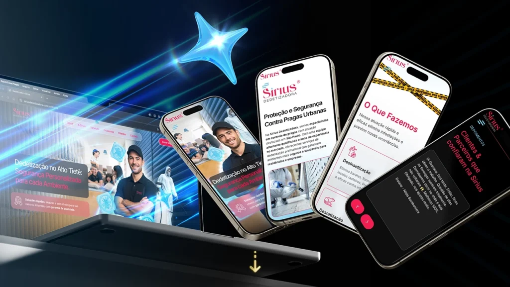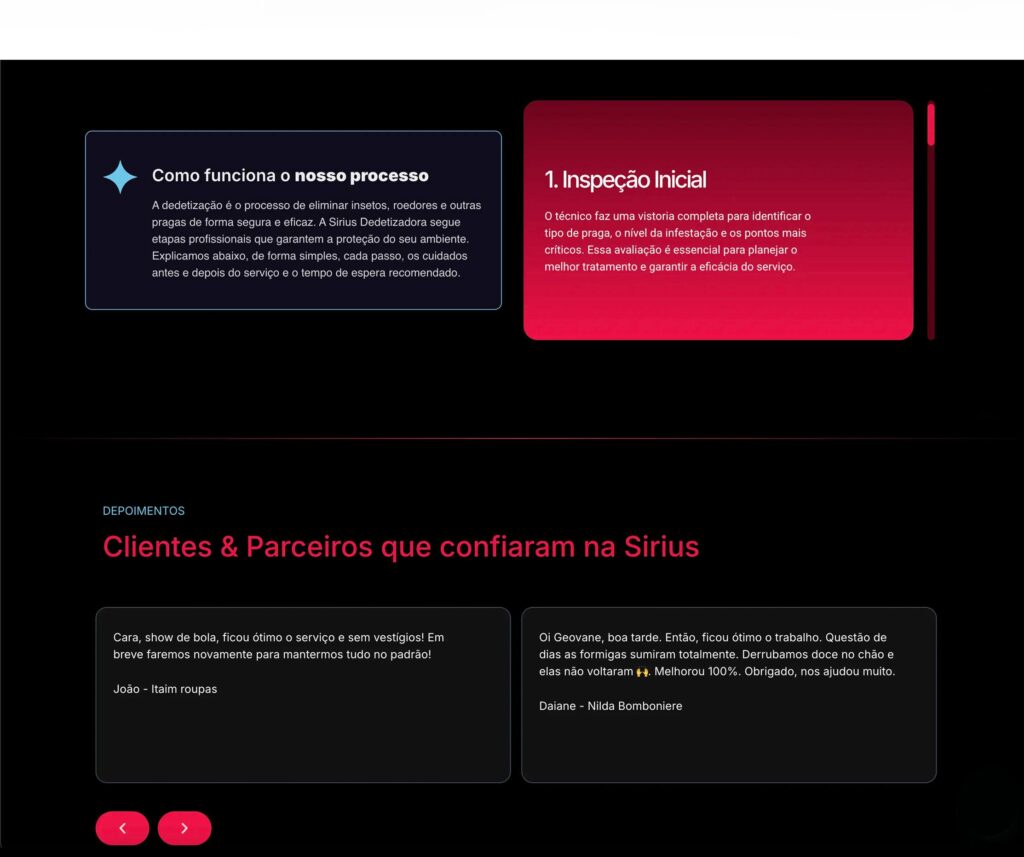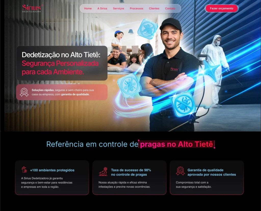 Criei a identidade visual completa da Sirius Dedetizadora, unindo conceito e impacto visual. O desafio foi traduzir a força da estrela Sirius e a astúcia do escorpião em uma marca única, moderna e memorável. Além do logo, desenvolvi o site institucional com foco em autoridade e conversão.